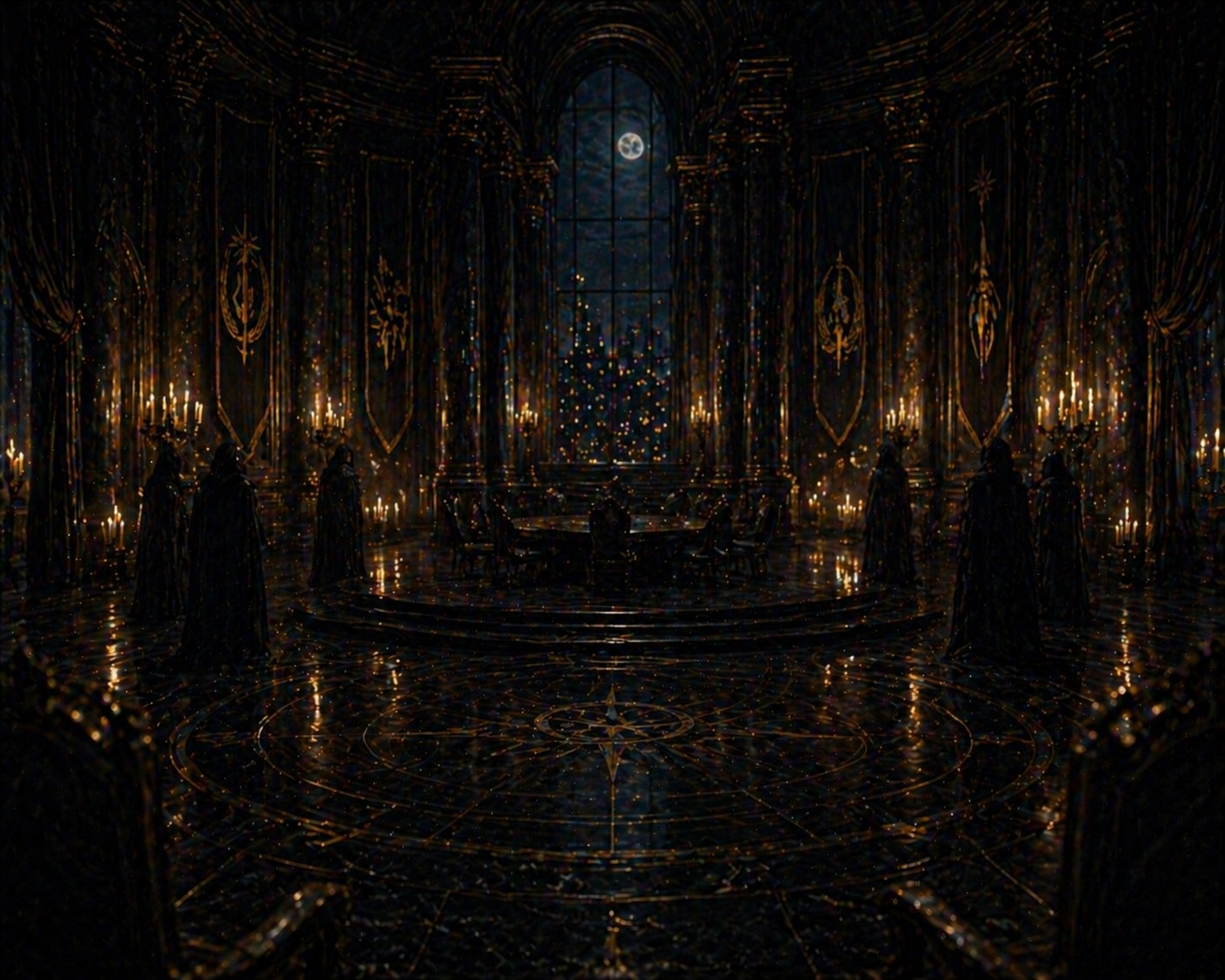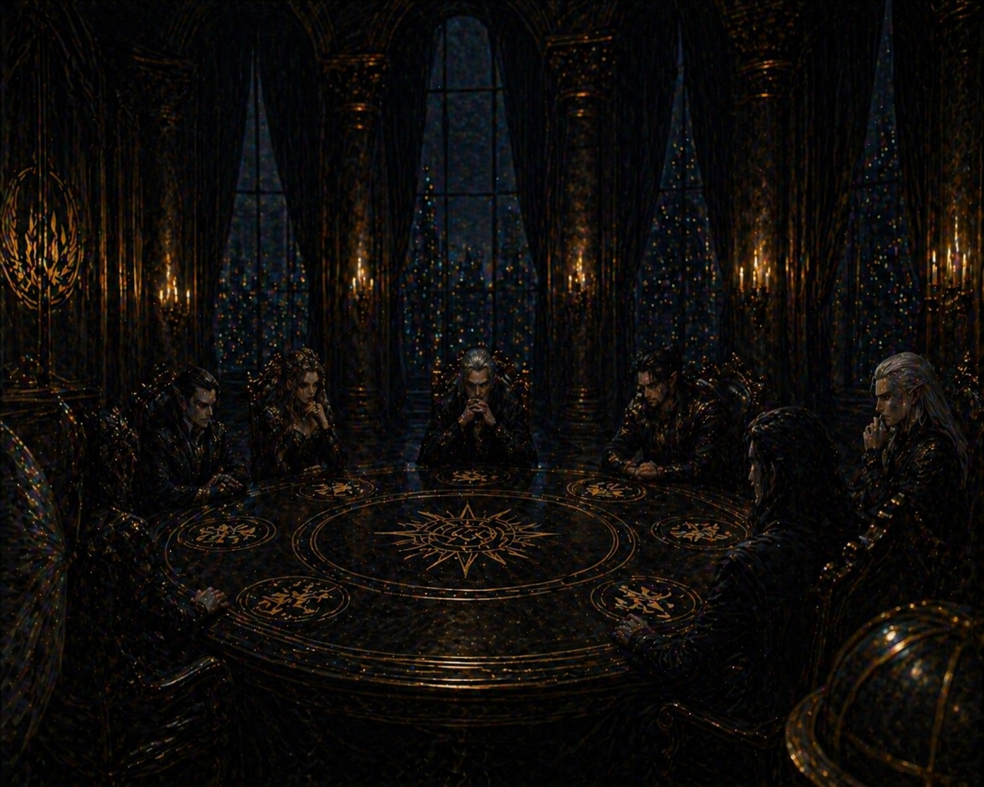 The atmosphere within the Council Chambers is designed to be ancient, secretive, and imbued with a quiet danger. It is a place where every spoken word carries immense weight, and no utterance is ever without consequence. It lacks chaos or overt aggression; instead, it is controlled, imposing, and heavy with the pervasive understanding that the decisions made within its walls shape every aspect of the world beyond.
